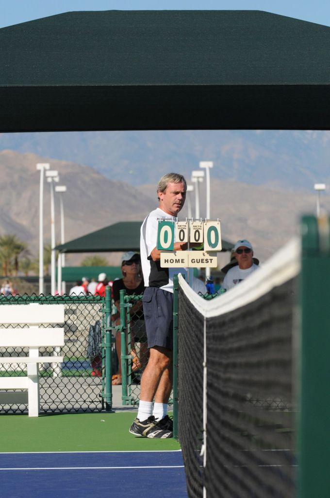 Future curmudgeon Rob carefully measures the net in preparation for some awesome net cords in his upcoming National Championship match.