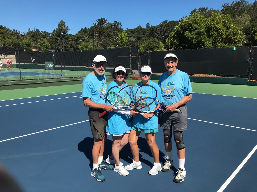 The Curmudgeon’s fame as the premier collection of senior tennis players in Silicon Valley is under threat, as another group of tennis veterans with 200 years of playing time between them have stolen the limelight with a featured mention in the widely-read Alpine Hills Weekly Update.